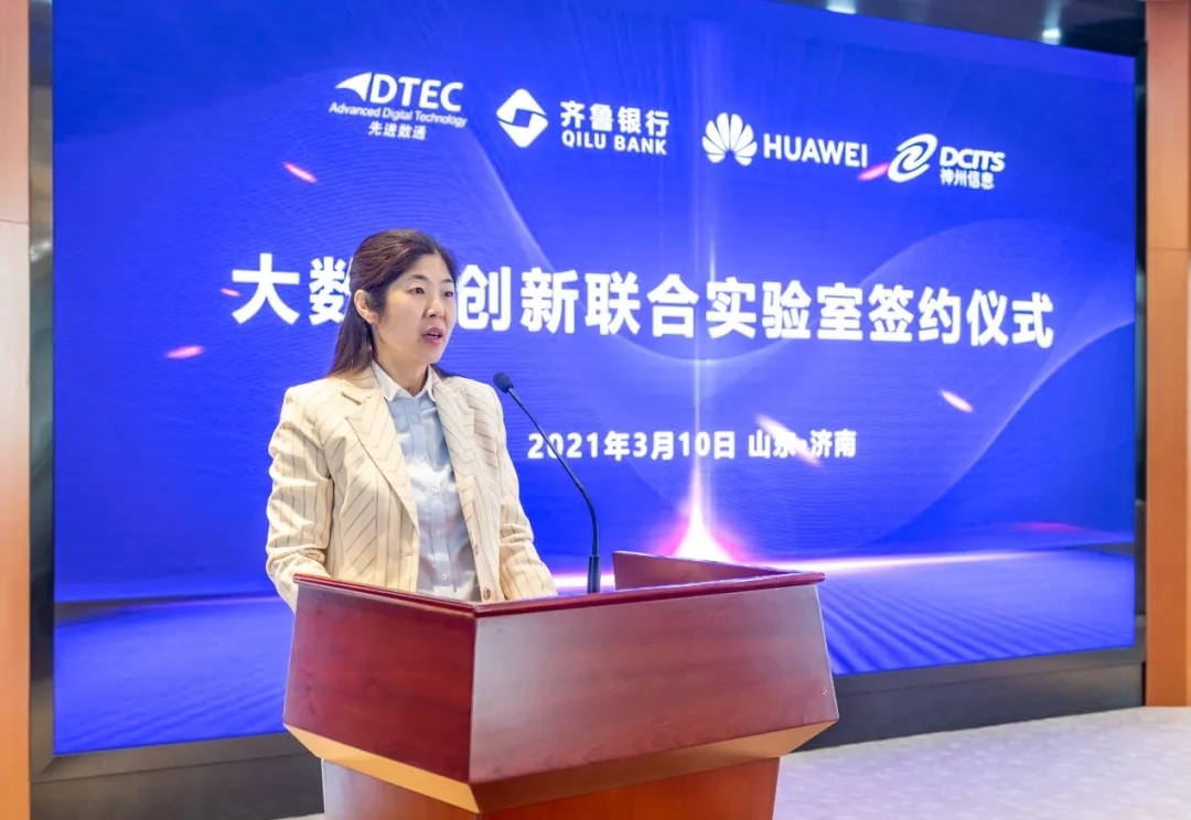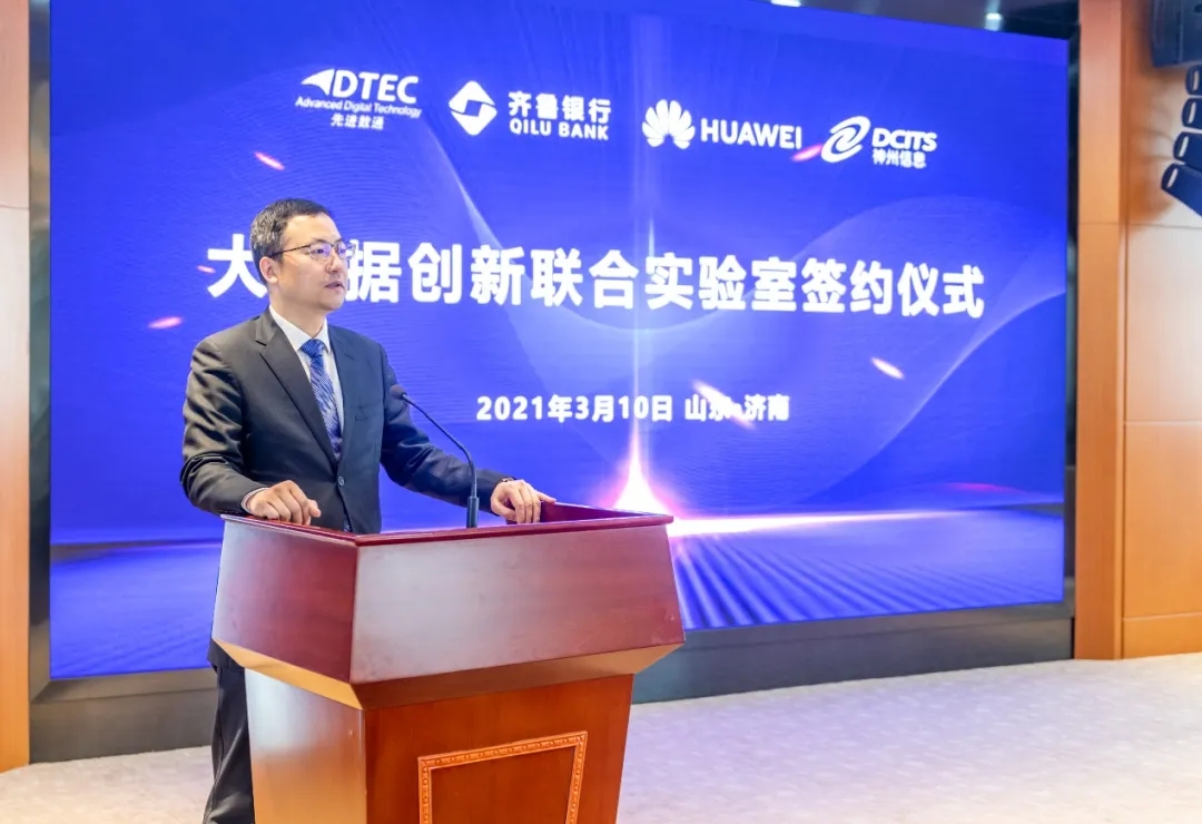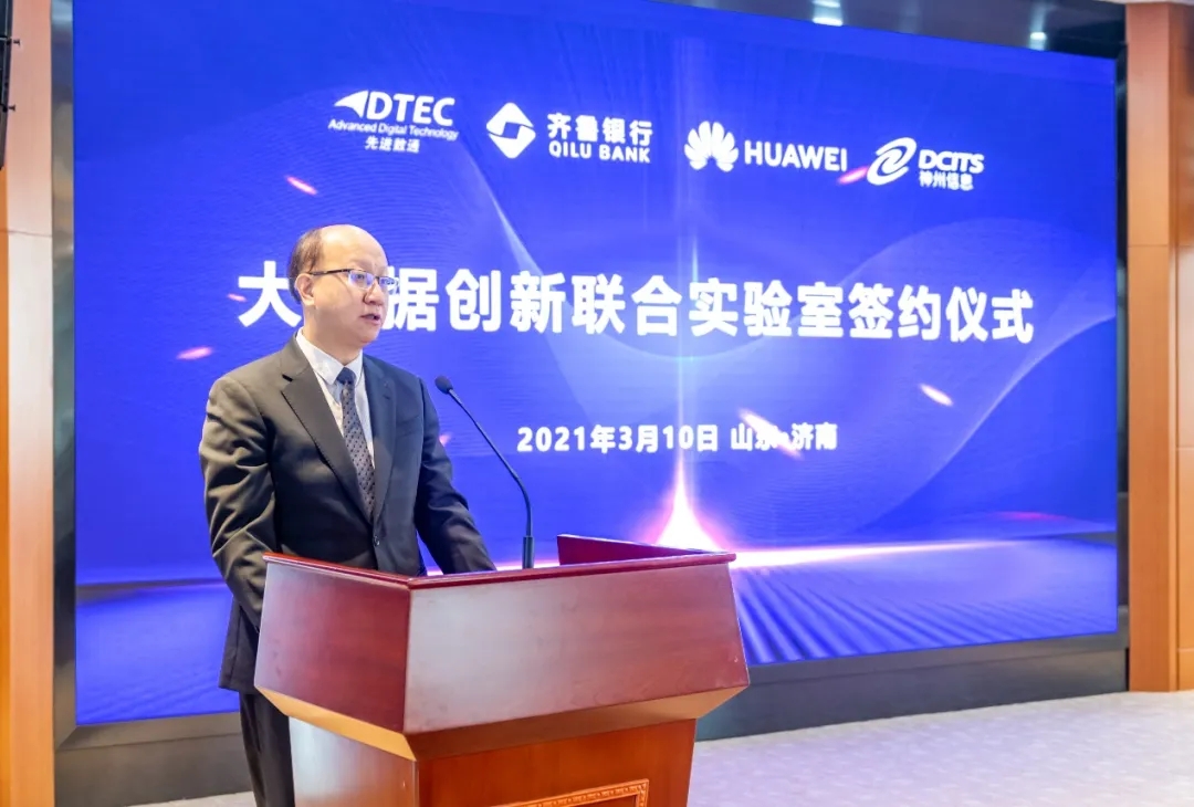 先进数通副总裁金麟先生在致辞中提到,先进数通自2000成立以来一直专注于中国金融信息化的建设,软件解决方案的90%以上的业务集中于金融行业,紧跟中国银行业数字化转型的浪潮,公司目前在金融分布式架构、金融数据中台、金融大数据应用、区块链应用解决方案均处于行业领先地位。希望与齐鲁银行、华为公司、神州信息一道让大数据创新联合实验室为齐鲁银行业务发展创造价值,成为中国商业银行数字化转型的标杆!