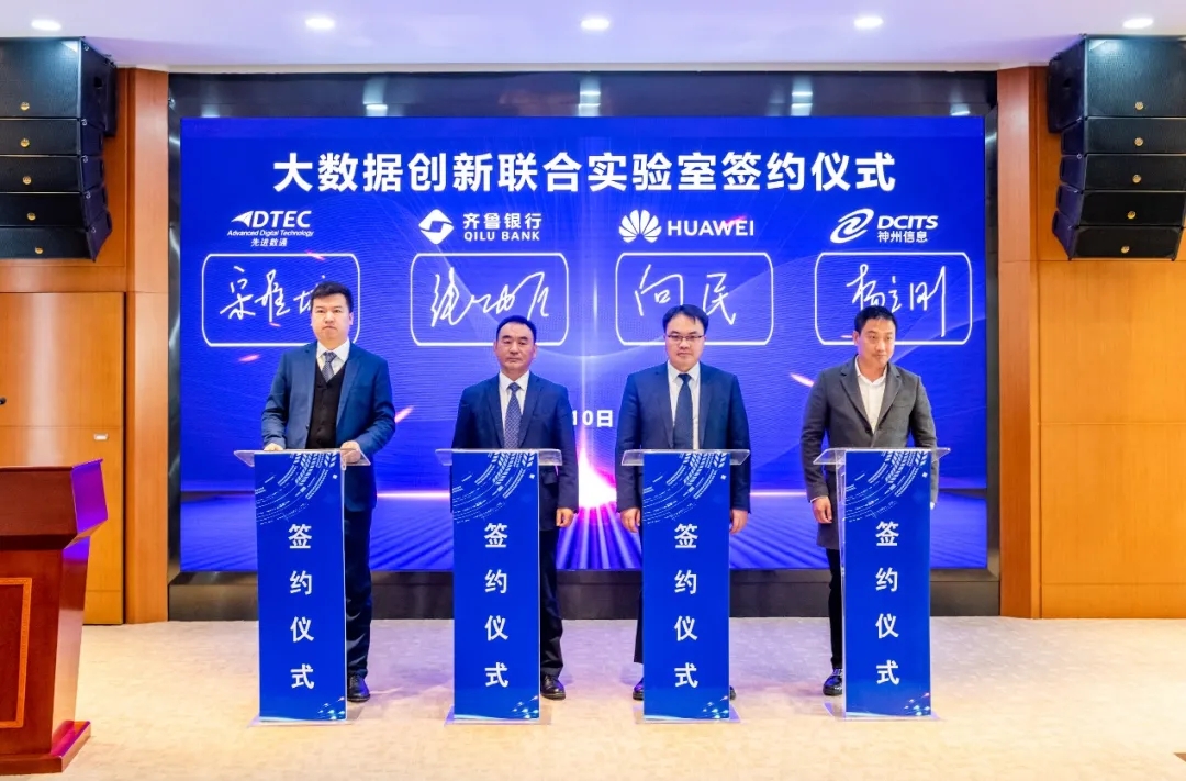 3月10日,“大数据创新联合实验室”签约仪式在齐鲁银行总行举办,齐鲁银行、神州信息、华为、先进数通四方代表齐聚,共同签署了金融大数据创新发展合作协议。四方将在互利互惠、合作共赢的原则上,共同开展金融大数据应用合作,建立金融大数据创新发展新生态,全面推进金融业数字化转型。