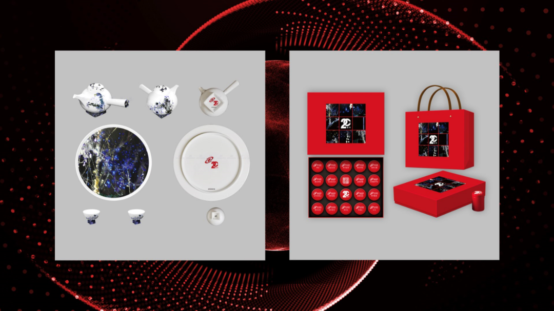公司为所有20年员工精心准备了一份特殊的礼物。其中,每一盒茶叶的包装上都印着公司未来发展的核心产品及方案,茶叶和茶具礼盒上印的图案是一副名为《黑夜缝隙》的艺术作品,画面中的光就像整个夜空的缝隙,似乎想要撑开或者撕裂黑夜 ,彰显出对现代社会的设问和希冀。以此表达对这些20年员工,为星空电竞昔日辉煌做出的努力的肯定和感谢。长期以来,公司也在关注科技与艺术的融合发展,积极扶持、培养青年艺术家,而这幅作品就是公司合作艺术家庹梦倩所创作。