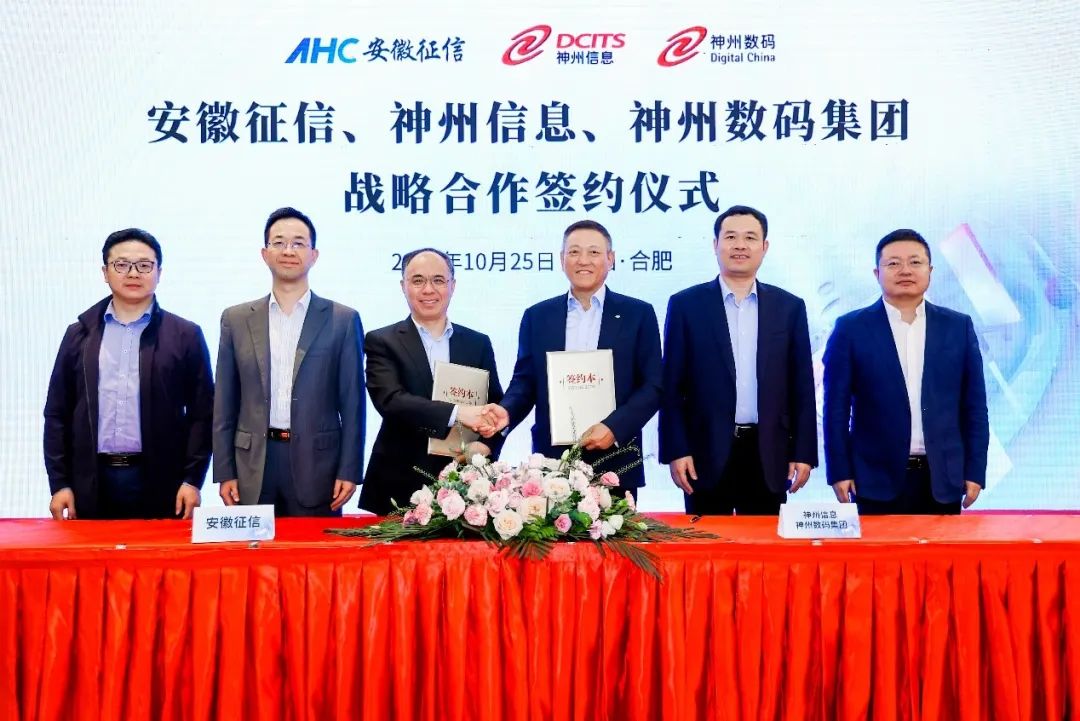 2023年10月25日,神州信息、星空电竞集团与安徽征信共同举办战略合作签约仪式,宣布将在数据资产、数字产融云、金融科技与生成式AI等领域建立战略合作伙伴关系,根植安徽、面向全国,以数字技术推动金融服务实体经济,赋能产业数字化转型升级。