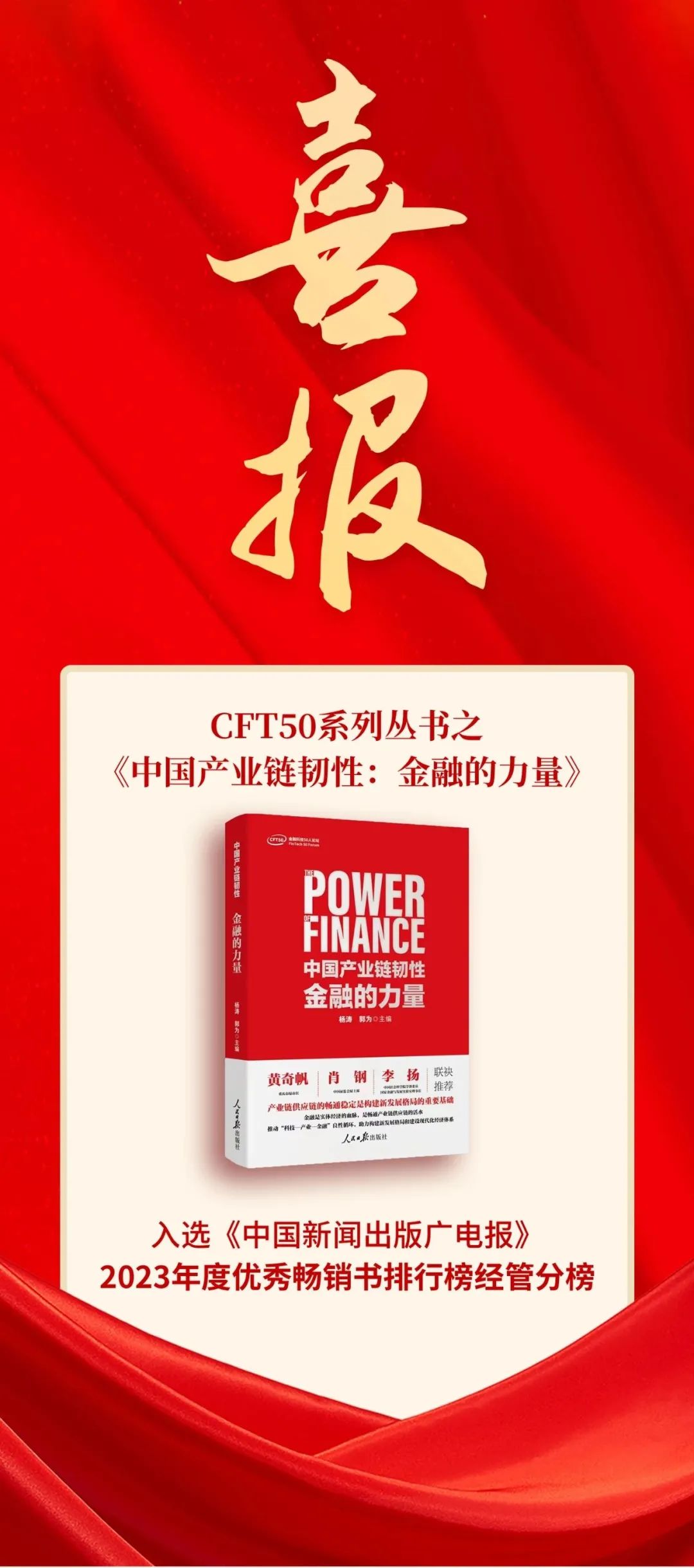 《中国新闻出版广电报》近日公布2023年度优秀畅销书排行榜,由神州信息董事长 郭为与国家金融与发展实验室副主任 杨涛共同主编、人民日报出版社出版的《中国产业链韧性:金融的力量》入选《中国新闻出版广电报》2023年度优秀畅销书排行榜经管分榜。